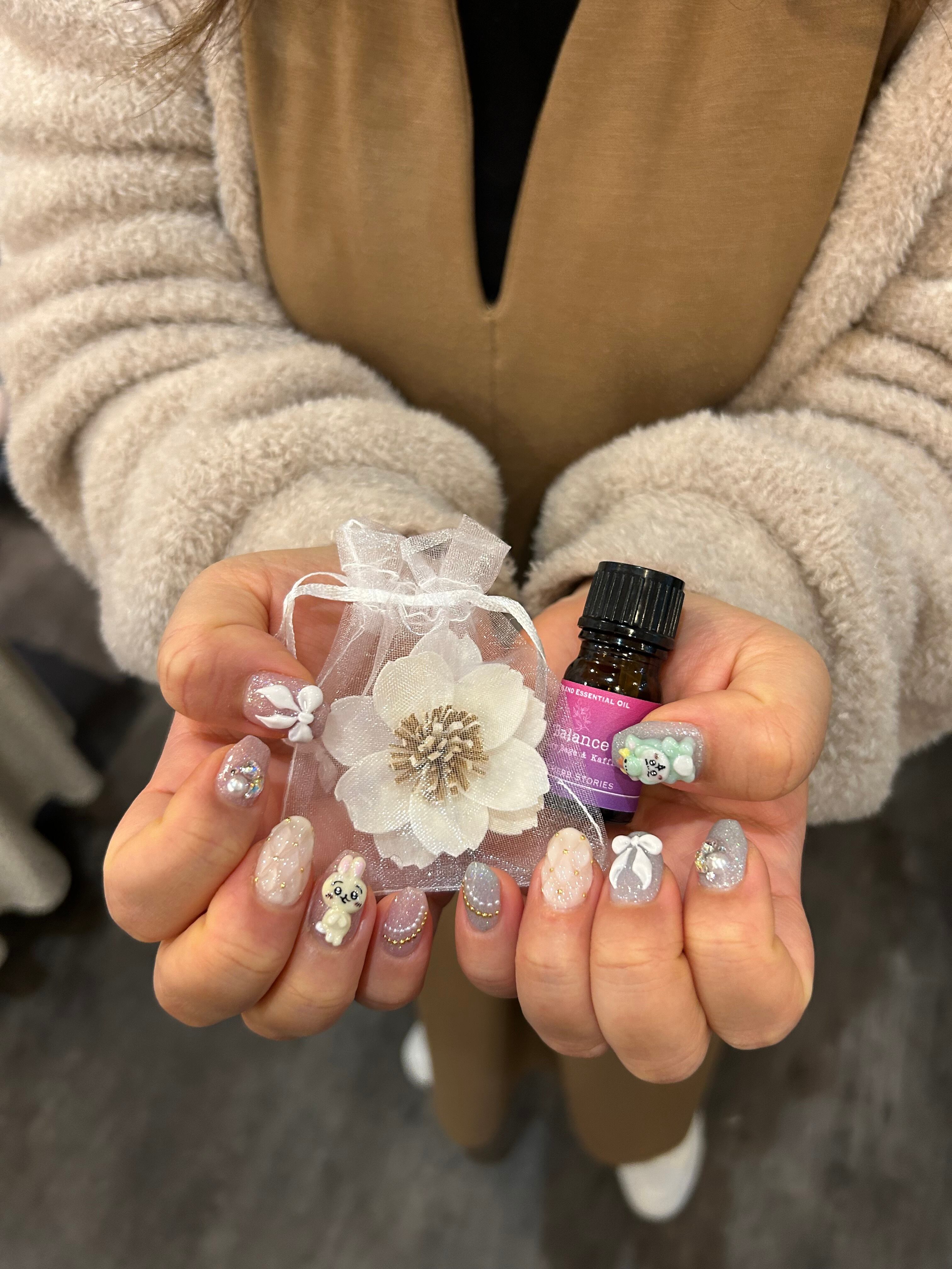 天然アロマと、天然のソラの木の皮でできたソラフラワーのサシェのセットでお届けします